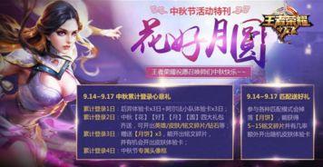 3. 活动福利:为了庆祝中秋佳节,王者荣耀将推出一系列活动,包括登录送好礼、积分翻倍等。玩家们可以尽情享受这些福利,提升自己的战斗力。
